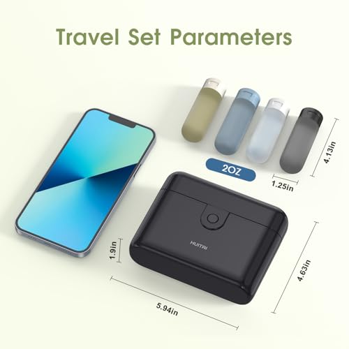 Compact & Travel-Ready Design:Crafted from durable ABS material, the travel case measures 5.9” x 1.9” x 4.63”, offering a lightweight and portable solution for all your travel needs. It includes four 2oz bottles, perfectly sized to meet TSA liquid requirements while providing ample space for your favorite toiletries.