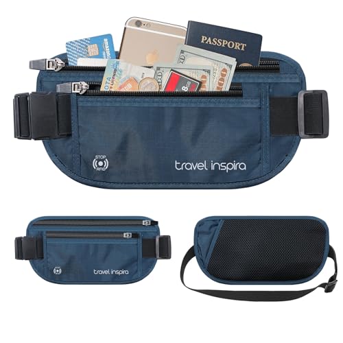 travel inspira Travel Money Belt with Slim Anti-Theft RFID Blocking Passport Holder for Travel Concealed under Clothes for Ultimate Protection of Credit Cards, Cash, Passport & Documents, Navy Blue
