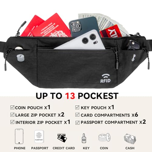 【Large capacity travel belt】It can hold two passports side by side. There are 12 compartment pockets, providing sufficient space for storing your mobile phone, currency, credit cards, keys, passports, plane tickets, etc. It comes with an exquisite and practical packaging bag which can be used separately to store other necessities.