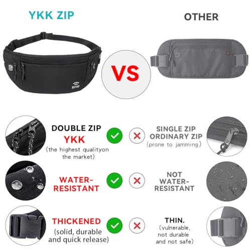 【High-quality material】 – The trip money belts is made of water-resistant nylon. There’s no annoying noise. High-quality YKK zipper (the highest quality in the marketplace). Thickened double-release safety buckles be sure that you don’t want to worry about reliability