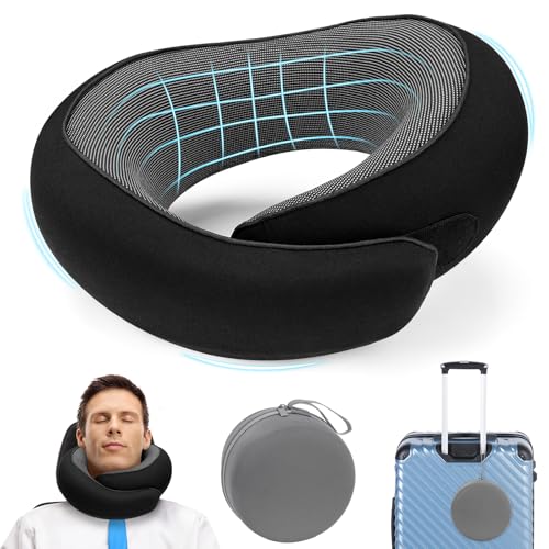 Travel Pillow for Airplane, Neck Pillow 100% Memory Foam with Comfortable Support for Long Flights, Cars, Trains Office & Home with Storage Box(Black)