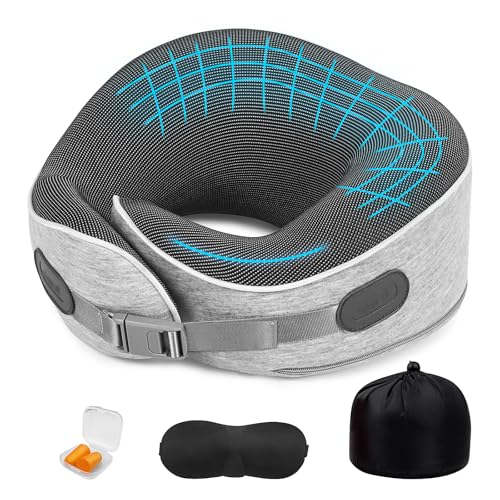 Travel Pillows for Airplanes Ergonomic Memory Foam Neck Pillow for Travel – 360° Head & Neck Support for Sleeping on Flights, Cars, Trains & Office (Gray-1)