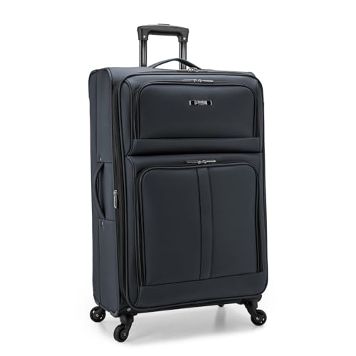 U.S. Traveler Anzio Softside Sturdy Ballistic Nylon Expandable Travel Suitcase Luggage with 4 Spinner Wheels, Dark Grey, Checked-Large 30-Inch