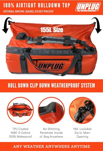 UNPLUG Ultimate Adventure Bag | 1680D Heavy Duty Waterproof Bag | Large Travel Duffle Bag which can be Used for Camping, Motorcycling, Boating, or Hunting