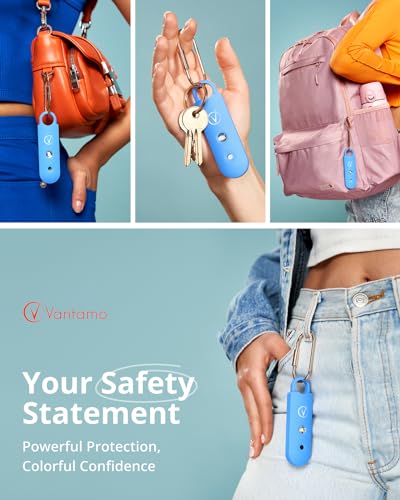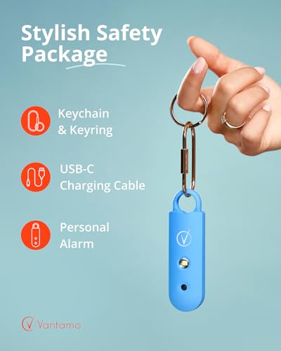Vantamo Personal Alarm for Self Defense with Low Battery Notice, Strobe Light & Extra Loud 130 dB Double Speakers Safety Keychain Set for Women, Rechargeable Panic Button for Womens Self Defense