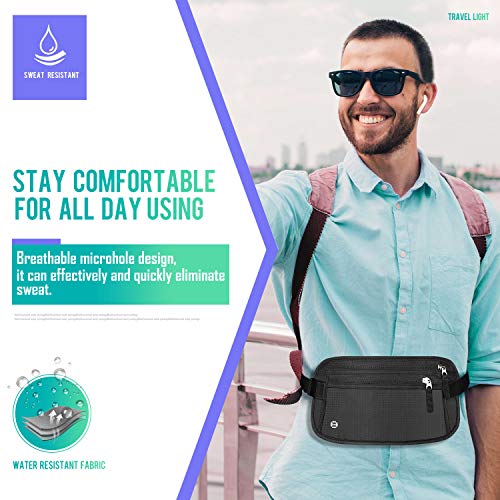 WALNEW Travel Money Belt for Women and Men – RFID Blocking Passport Holder Hidden Travel Wallet to Keep Cash, Credit Card, Passport, Cell Phone Safe